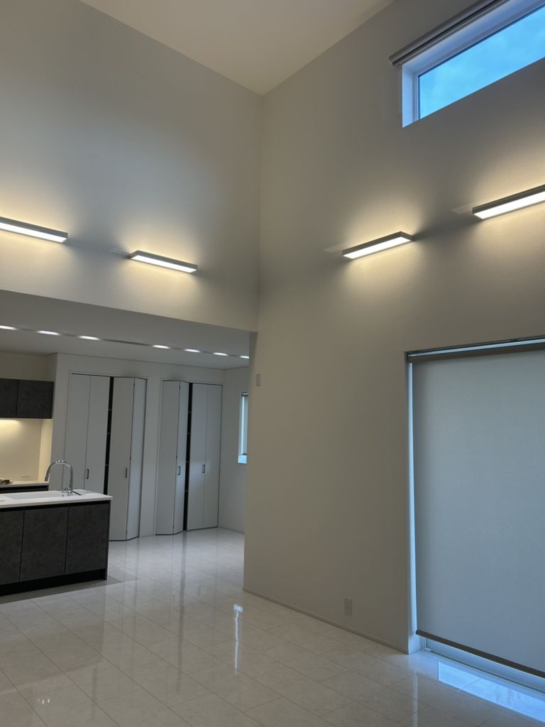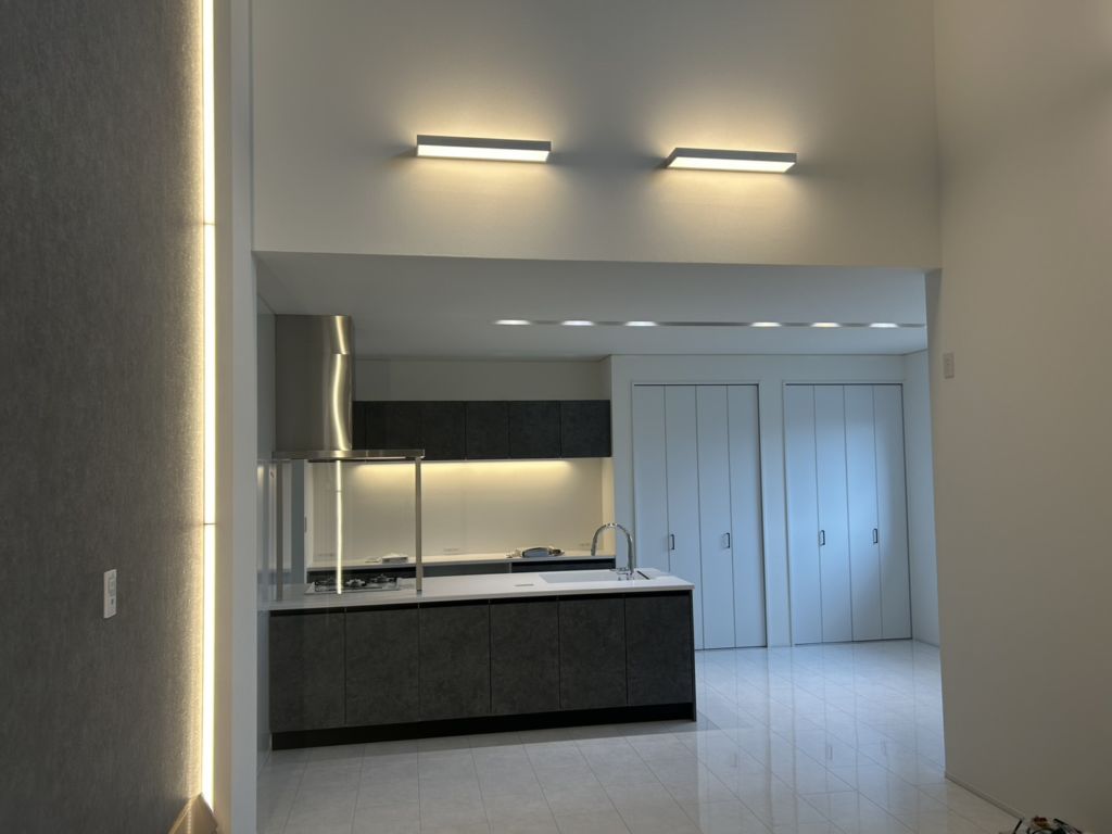 LDK内はダウンライトが視界に入らないよう照明計画を提案させていただきました。