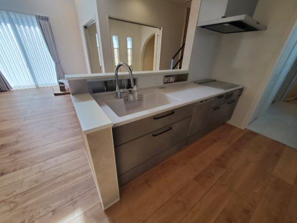 掃除のしやすいタカラスタンダードの対面キッチンです。グースネックの水栓、