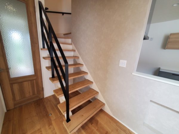 階段にはブラックのアイアン手すりを設けました。おしゃれでカッコいいですね。