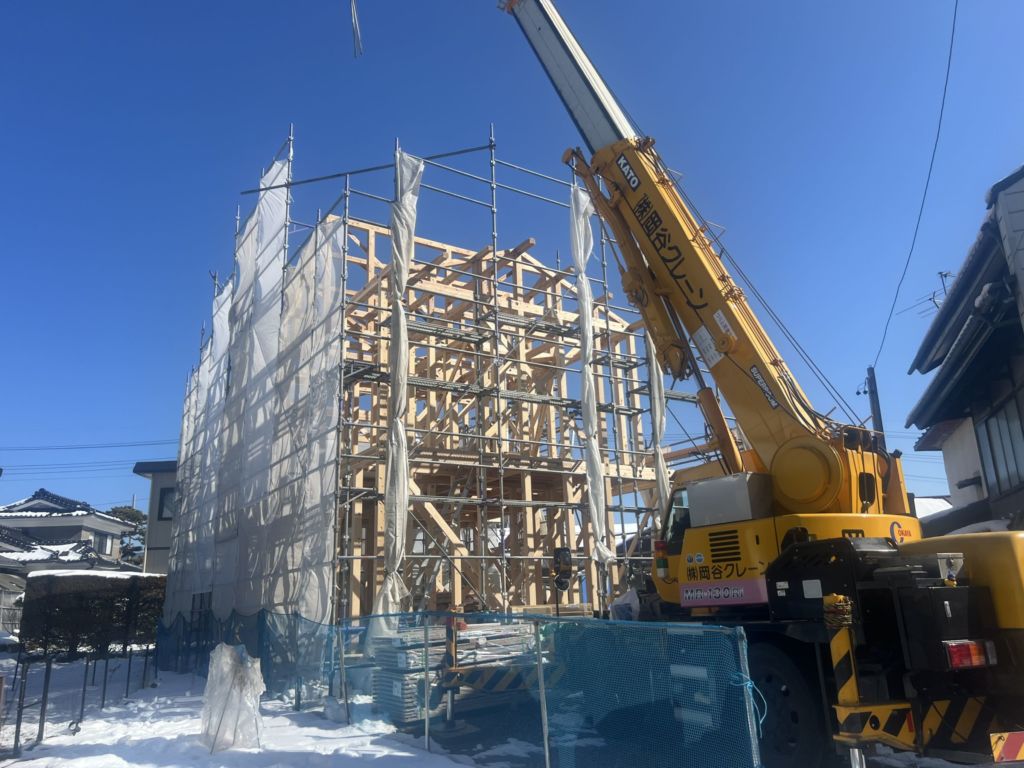 先日の大安吉日、岡谷市天竜町のF様邸が上棟しました。