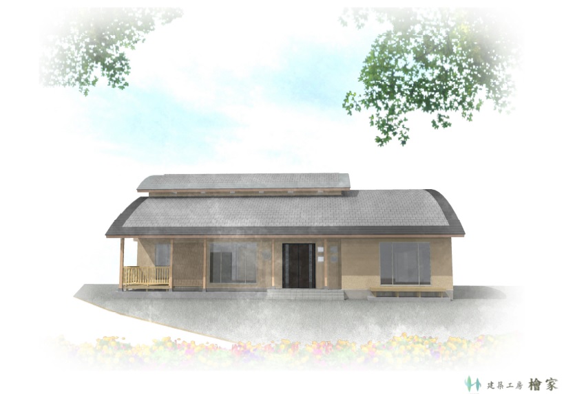 シンプルな外観にむくり屋根が印象的なデザインとなっています。