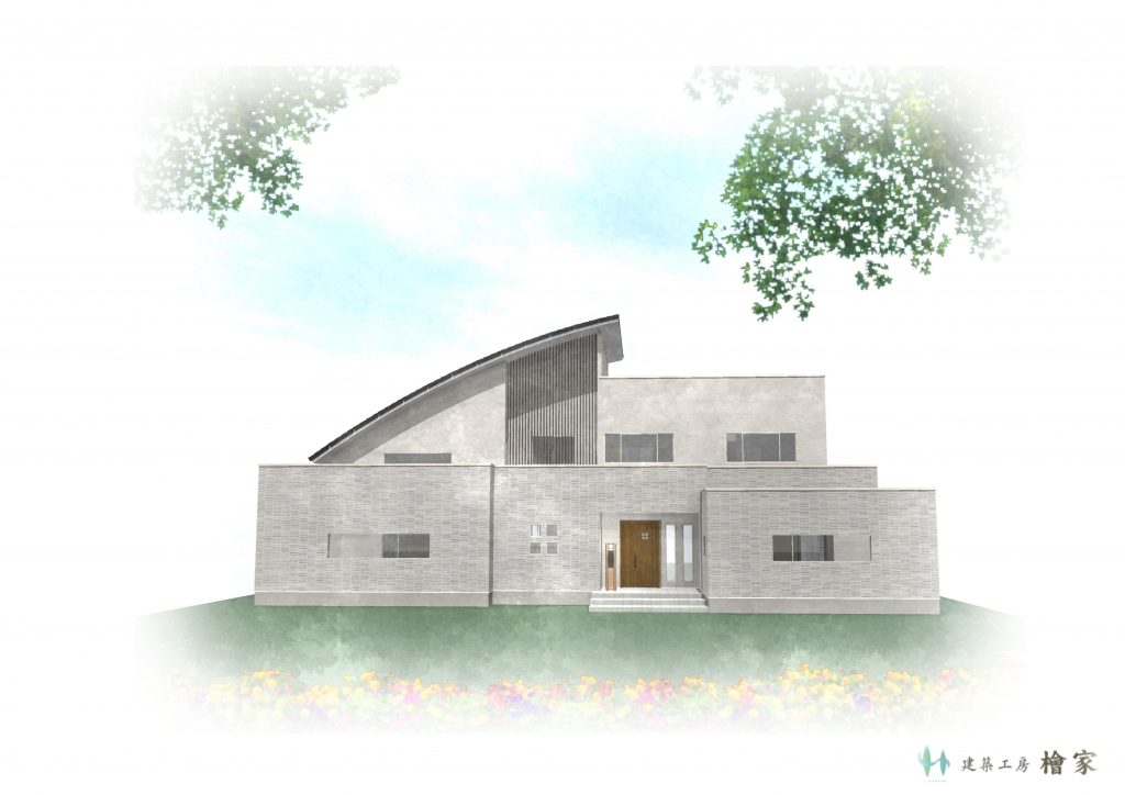 優雅なむくり屋根、重厚感をひきたてるデザインウォール、そして