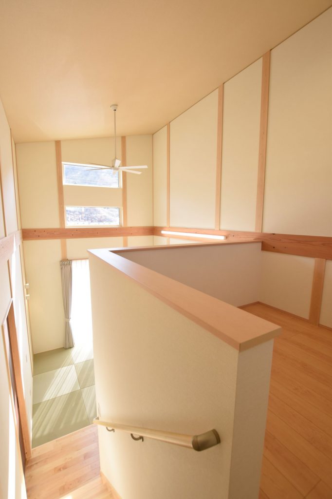 室内はスキップデザインによりひろびろとした空間を感じることができ、さらに吹抜け窓から光が入るのでとても明るい内観となっています。