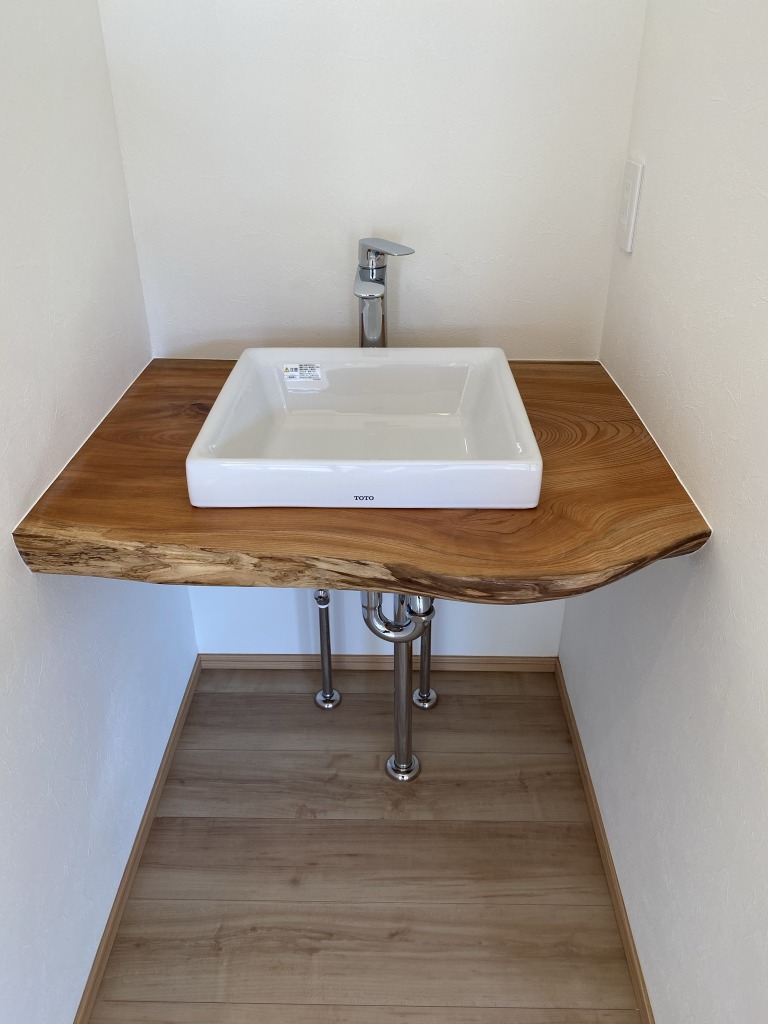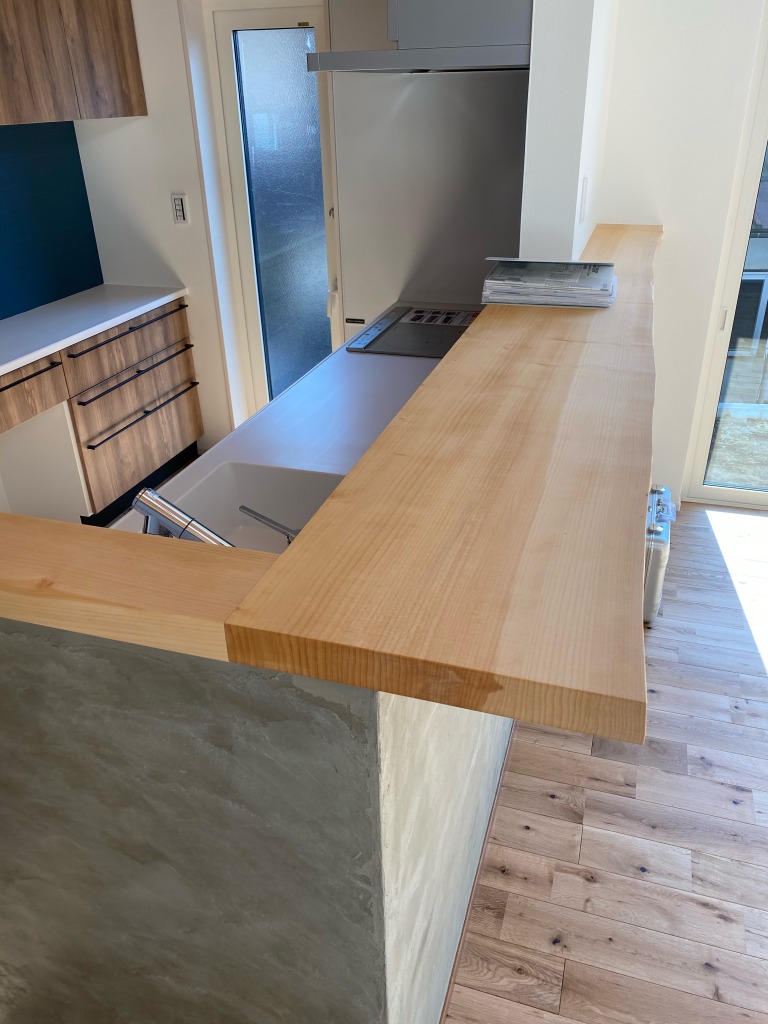 床はブラックチェリーのオイル塗装。これからの経年美が楽しみです。
