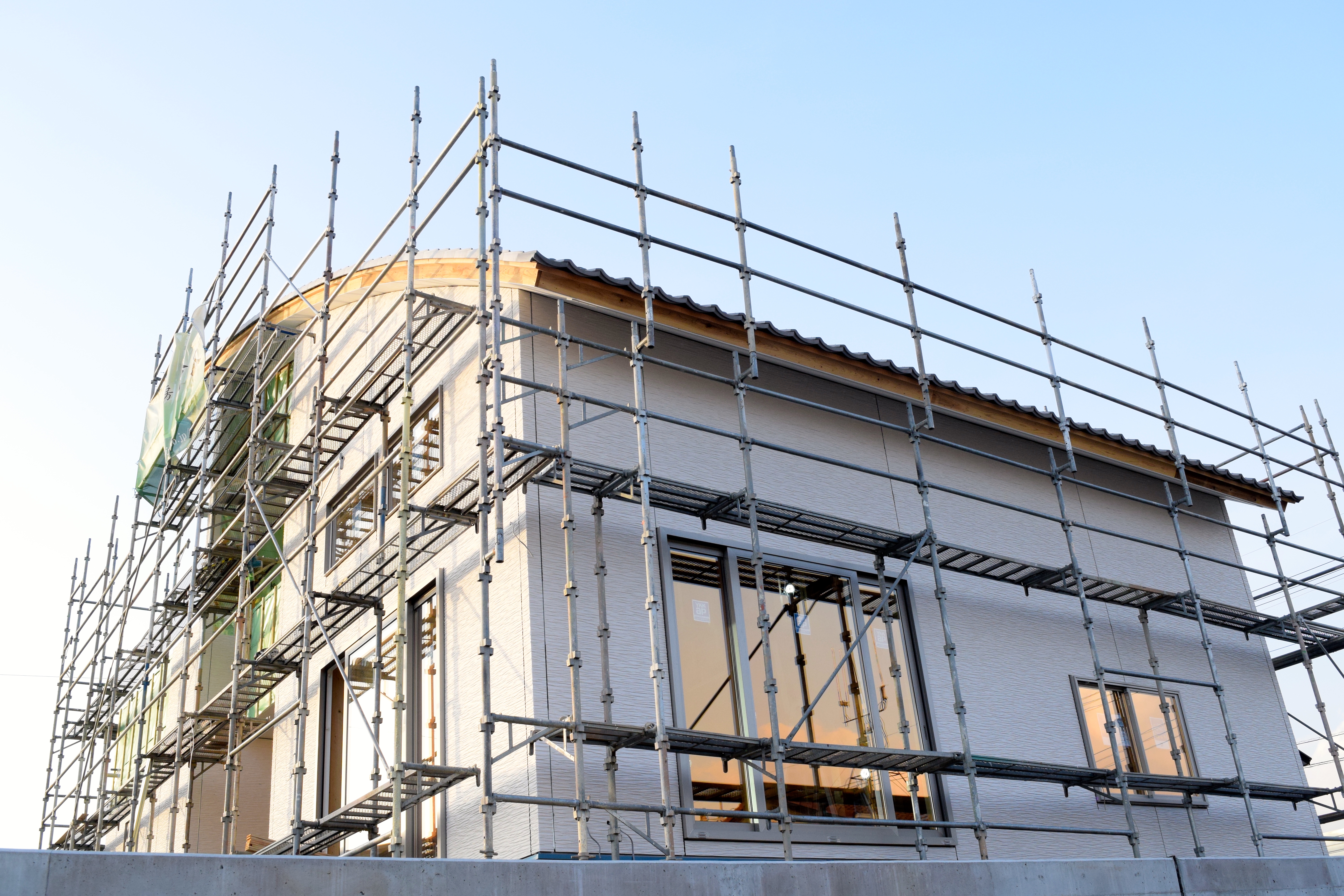 作業が徐々に進み、外壁の工事が始まっておりました。