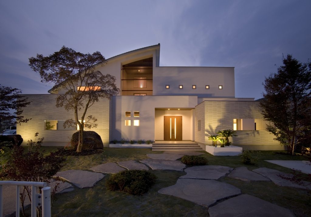 建坪約42坪で優雅なむくり屋根、玄関まわりを重厚感あふれる
