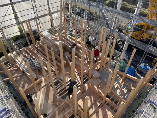 建て方には絶好の晴天に恵まれ無事終了となりました。